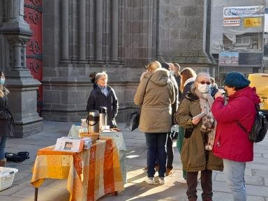 Chaque veille de grande fête liturgique, notre paroisse organise une évangélisation de Parvis le samedi matin en se mettant à l'écoute des personnes qui passent et en prenant le temps d'échanger, de partager.