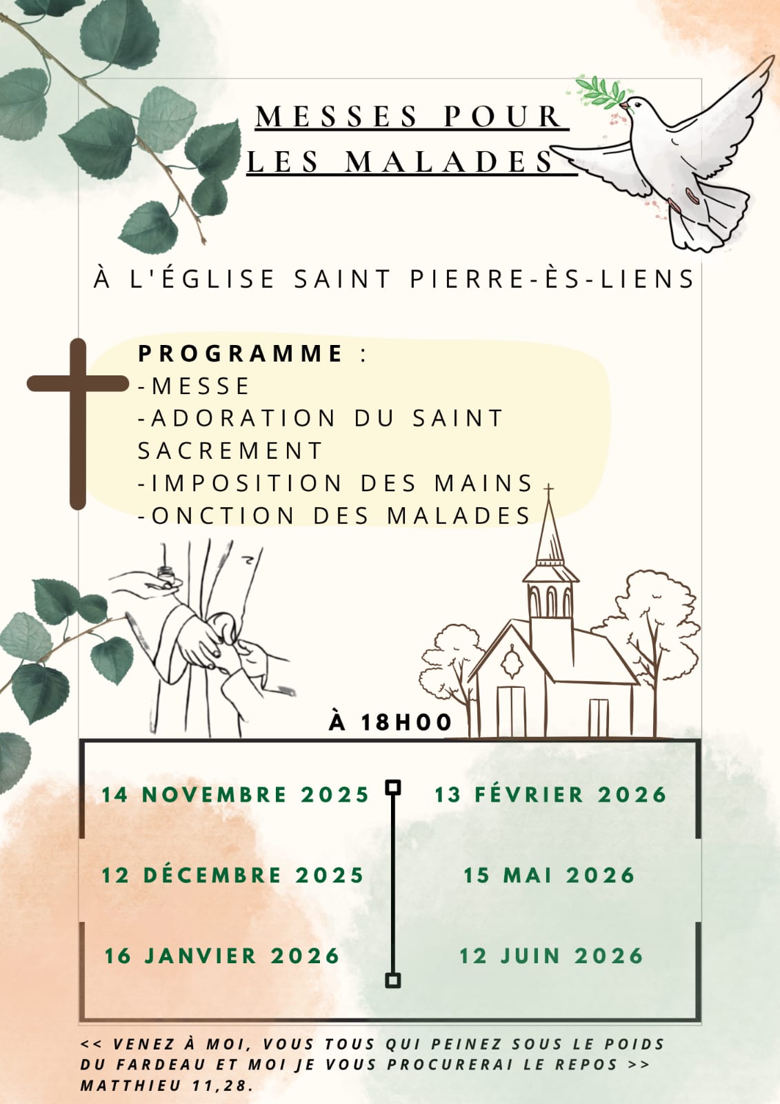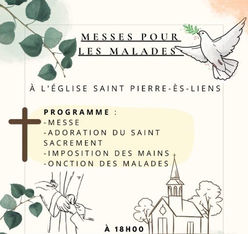 C'est avec joie que nous vous invitons à la Messe des Malades, célébrée ce vendredi 13 février 2026 à l'église Saint Pierre - ès-Liens Vigneux sur seine à 18h00.