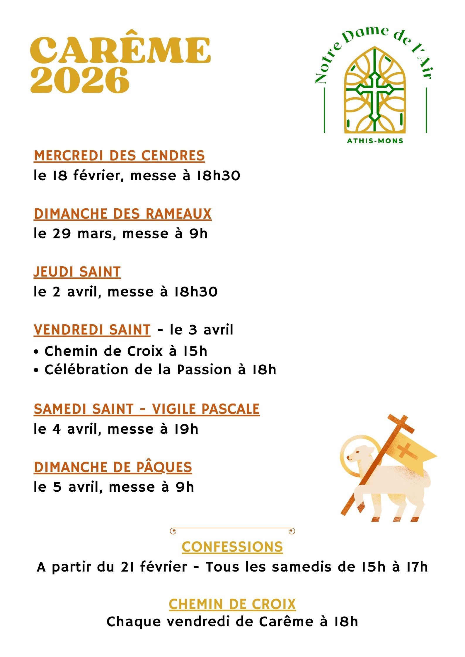 La messe des Rameaux sera cĂ©lĂ©brĂ©e le 29 mars Ă 9h Ă lâĂ©glise Notre-Dame de l'Air : venez nombreux commĂ©morer lâentrĂ©e du Seigneur Ă JĂ©rusalem et ouvrir ensemble la Semaine Sainte.