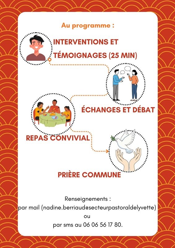 Cette année, ce sont les chrétiens qui préparent le repas et invitent nos frères musulmans. Pour aider le secteur pastoral, une participation financière de 10 € par personne est demandée. Vous pouvez également apporter un dessert.