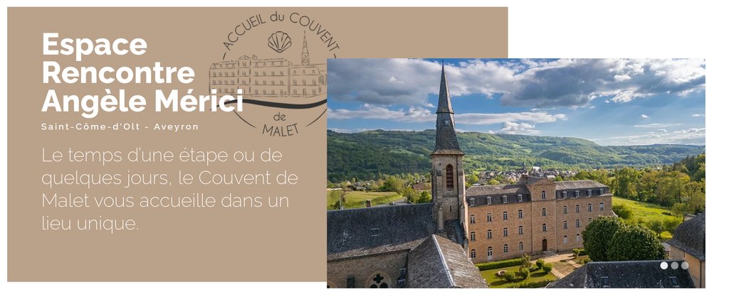 Le Couvent de Malet des sœurs ursulines, vous propose : un accueil dans un écrin de verdure, notamment pour les pèlerins du chemin de Saint-Jacques ; pour ceux qui souhaitent participer à la vie liturgique et à l’animation spirituelle du site tout au long de l’année ; pour des sessions et des formations, ainsi que l’accueil de groupes.