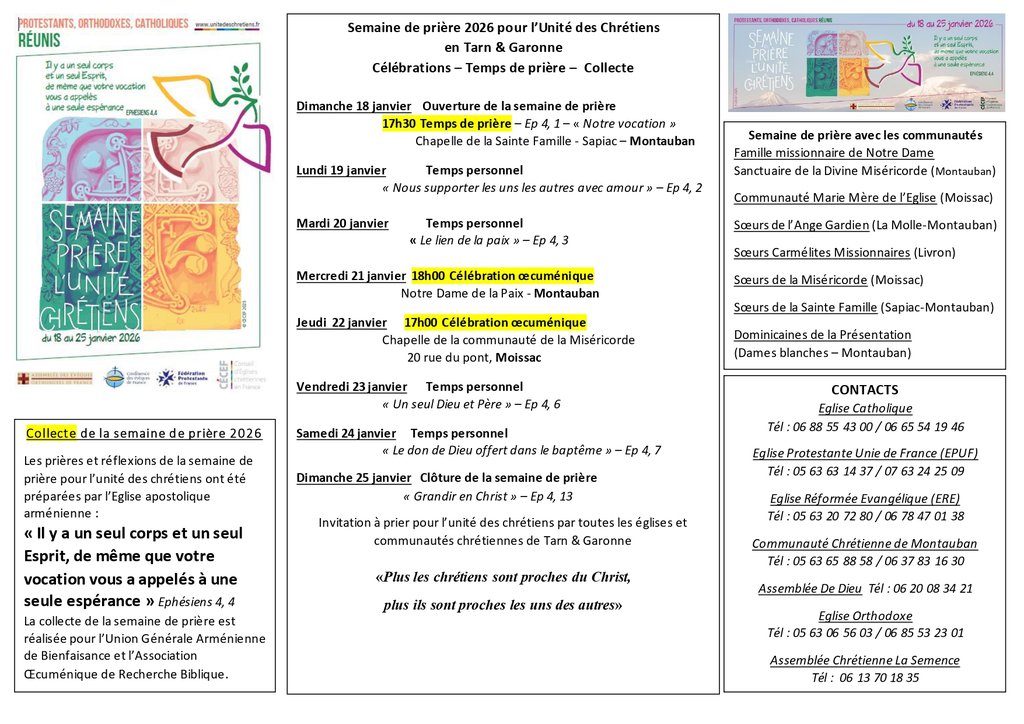 Semaine de prière 2026 pour l’Unité des Chrétiens en Tarn & Garonne