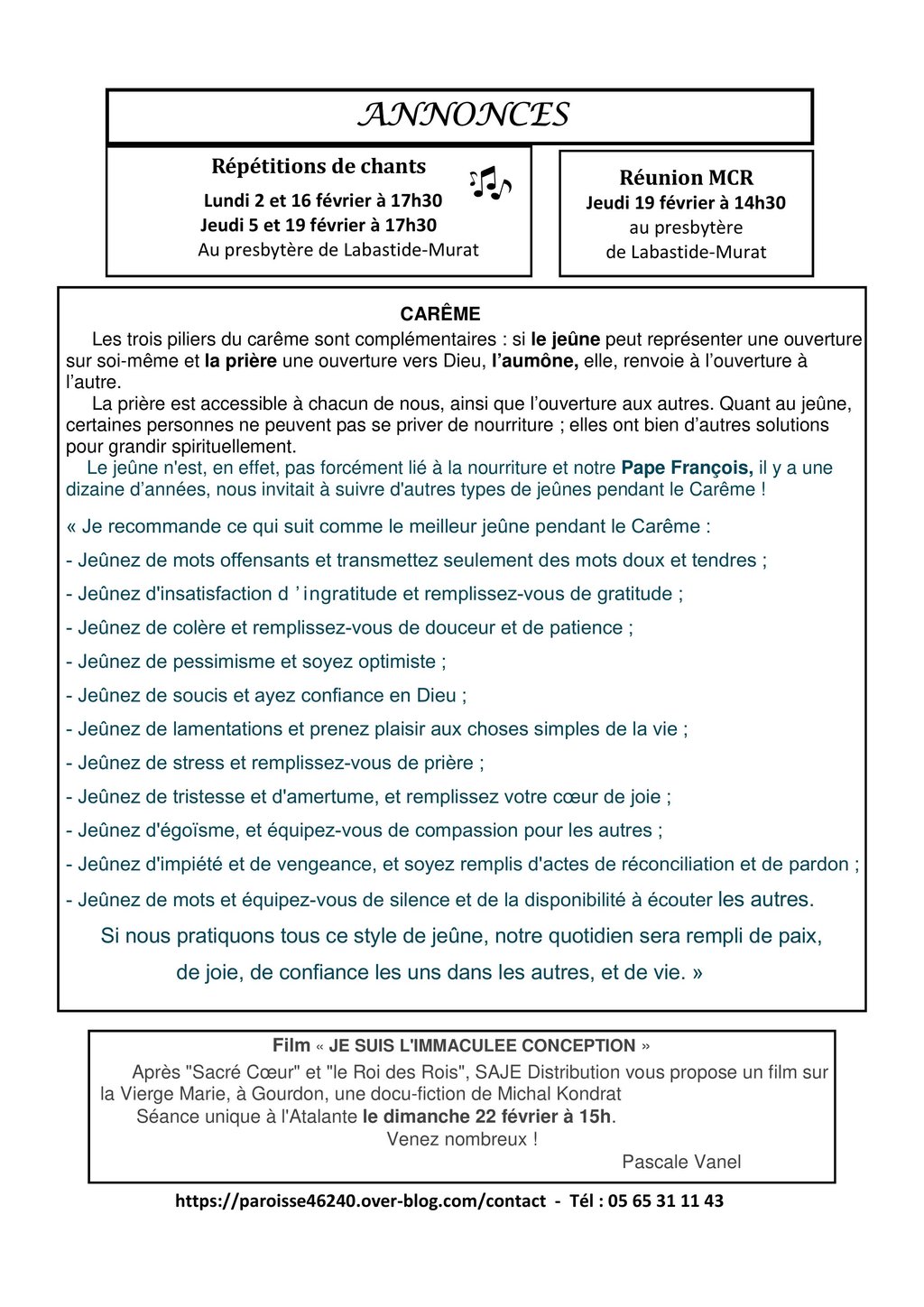 Publié le mardi 10 février 2026 - Paroisse de Labastide Murat
